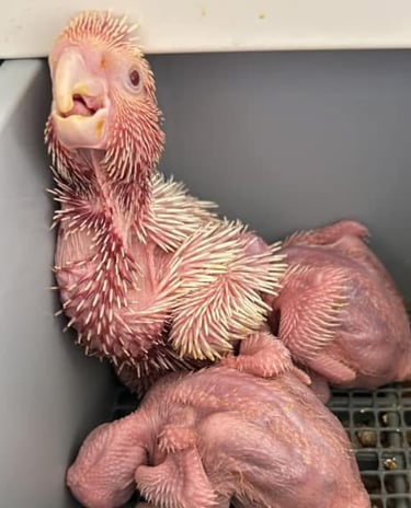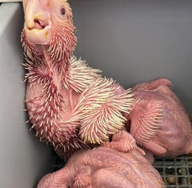 Nous élevons également le rosalbin dans sa mutation Lutino, pour celui ci les ailes et toutes les parties grises de la couleur originelle sont blanches.