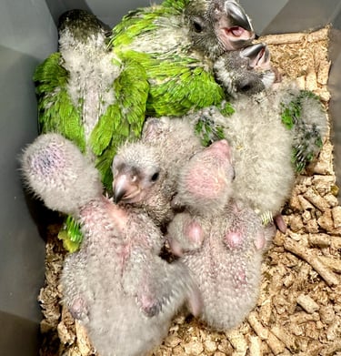 Tout est fait pour obtenir un élevage naturel par les parents ou éviter l'imprégnation des jeunes, si nous n'avons d'autres choix, d'incuber les œufs et élever les jeunes à la main.